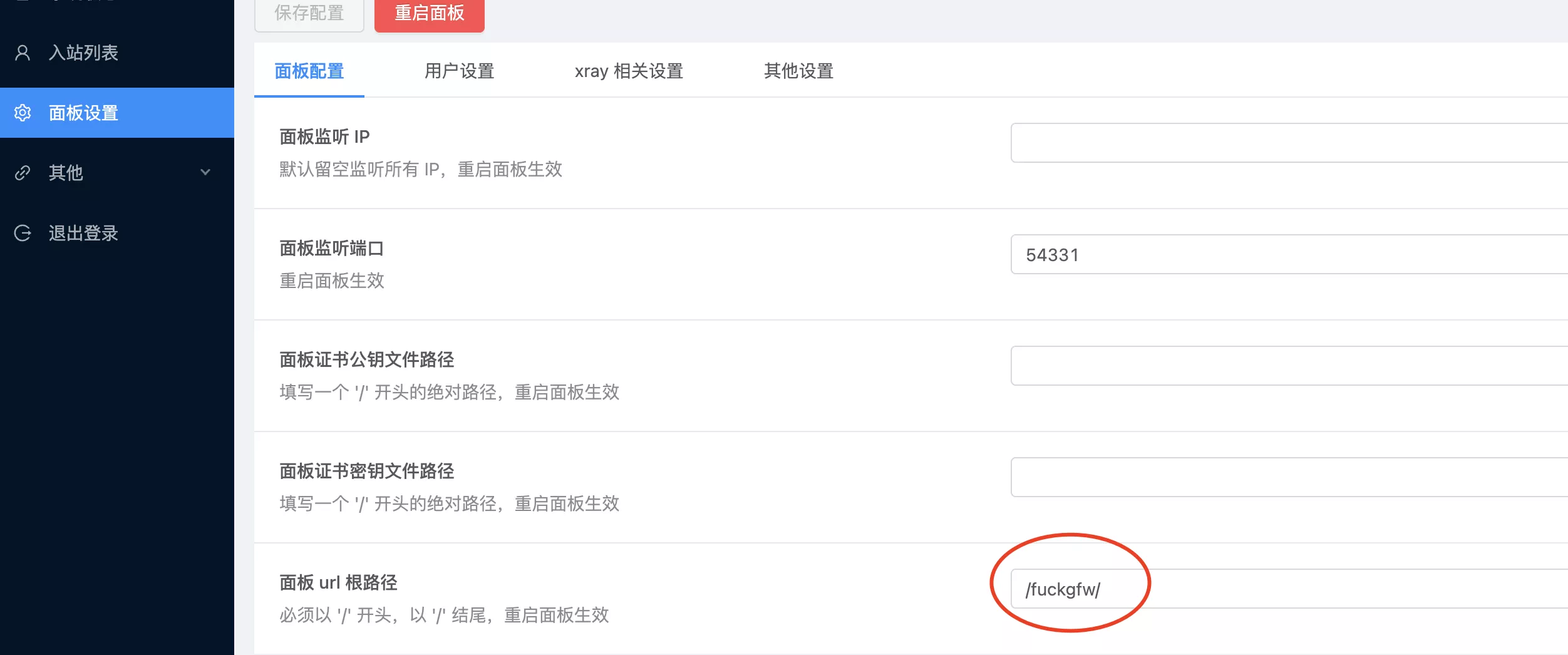 location ^~ /fuckgfw { #fuckgfw换成你前面设置的面板的url根路径